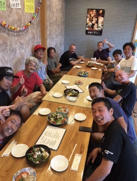 右の席の幅を取ってる 顔のとっても大きいのが ノビーで ゴールドコーストでサーフィンスクールをやっている。